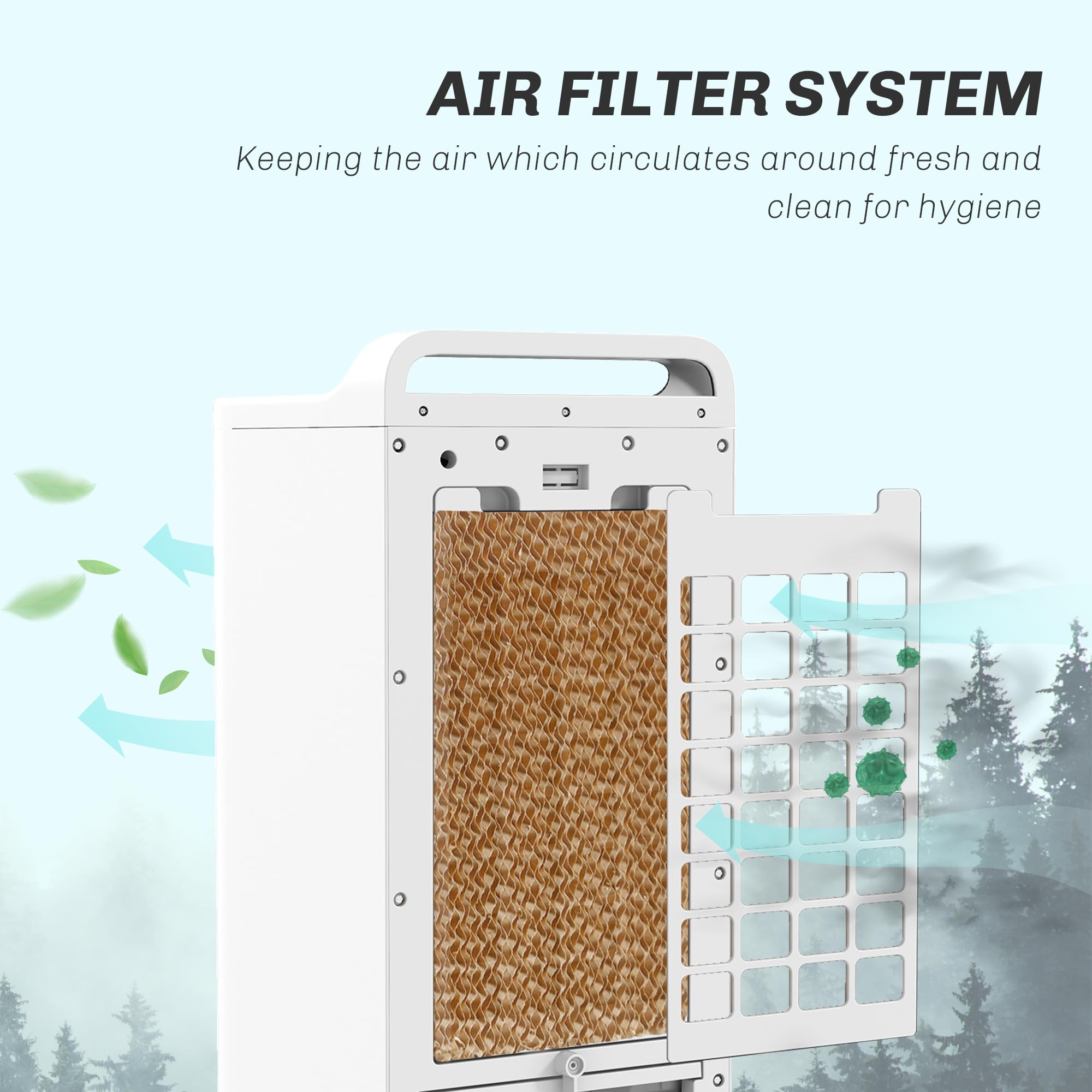 HOMCOM 26" Evaporative Air Cooler, 3-In-1 Ice Cooling Fan, Portable Swamp Cooler with Ice Packs, Water Tank, Timer, 90° Oscillating, Remote, for Home Office, Bedroom, White